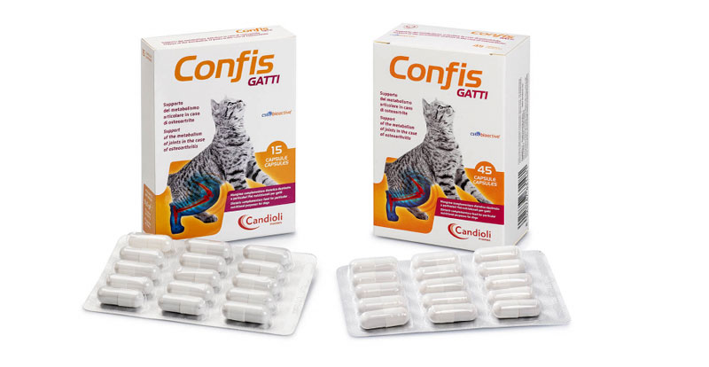 Confis Gatti è un mangime complementare dietetico destinato a particolari fini nutrizionali per gatti, formulato per il supporto del metabolismo articolare in caso di osteoartrite.